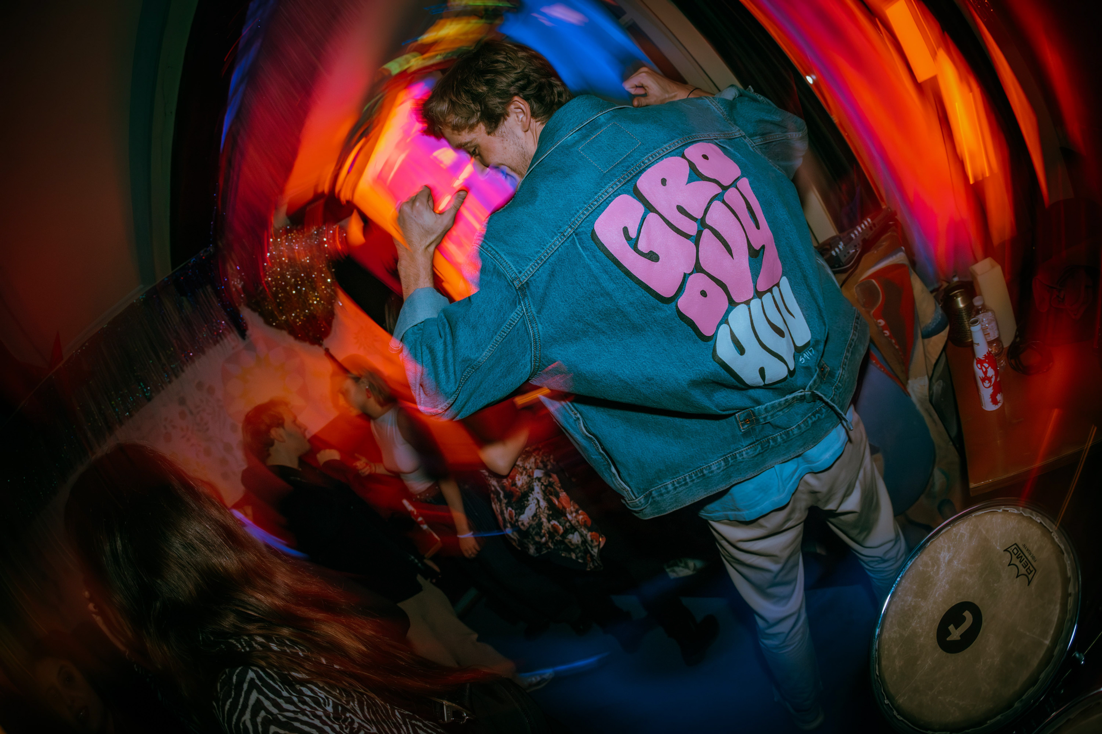 Groovy Huv is a talented DJ from Luxembourg, performing all over the world. He proudly wears his customised jacket on stage.