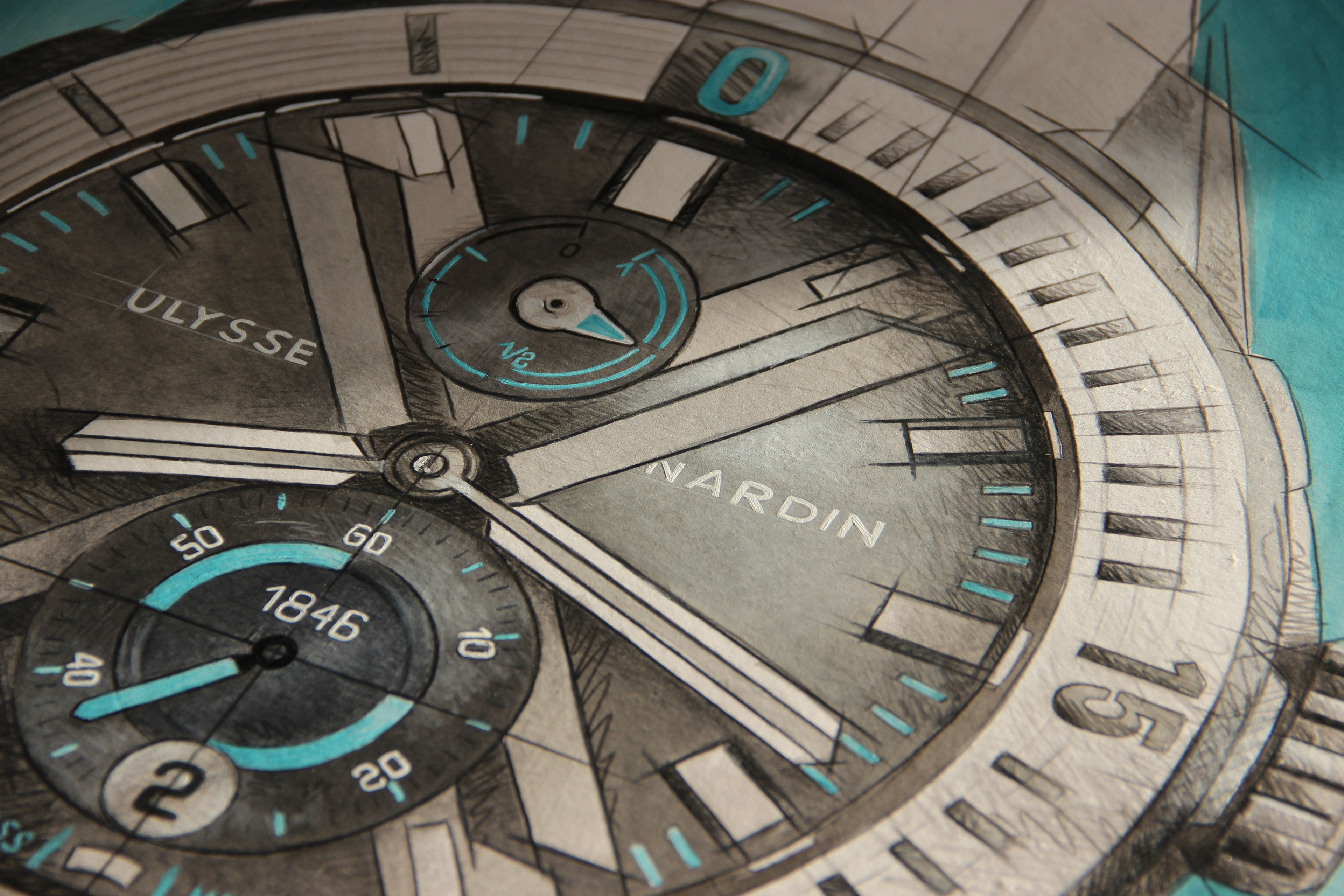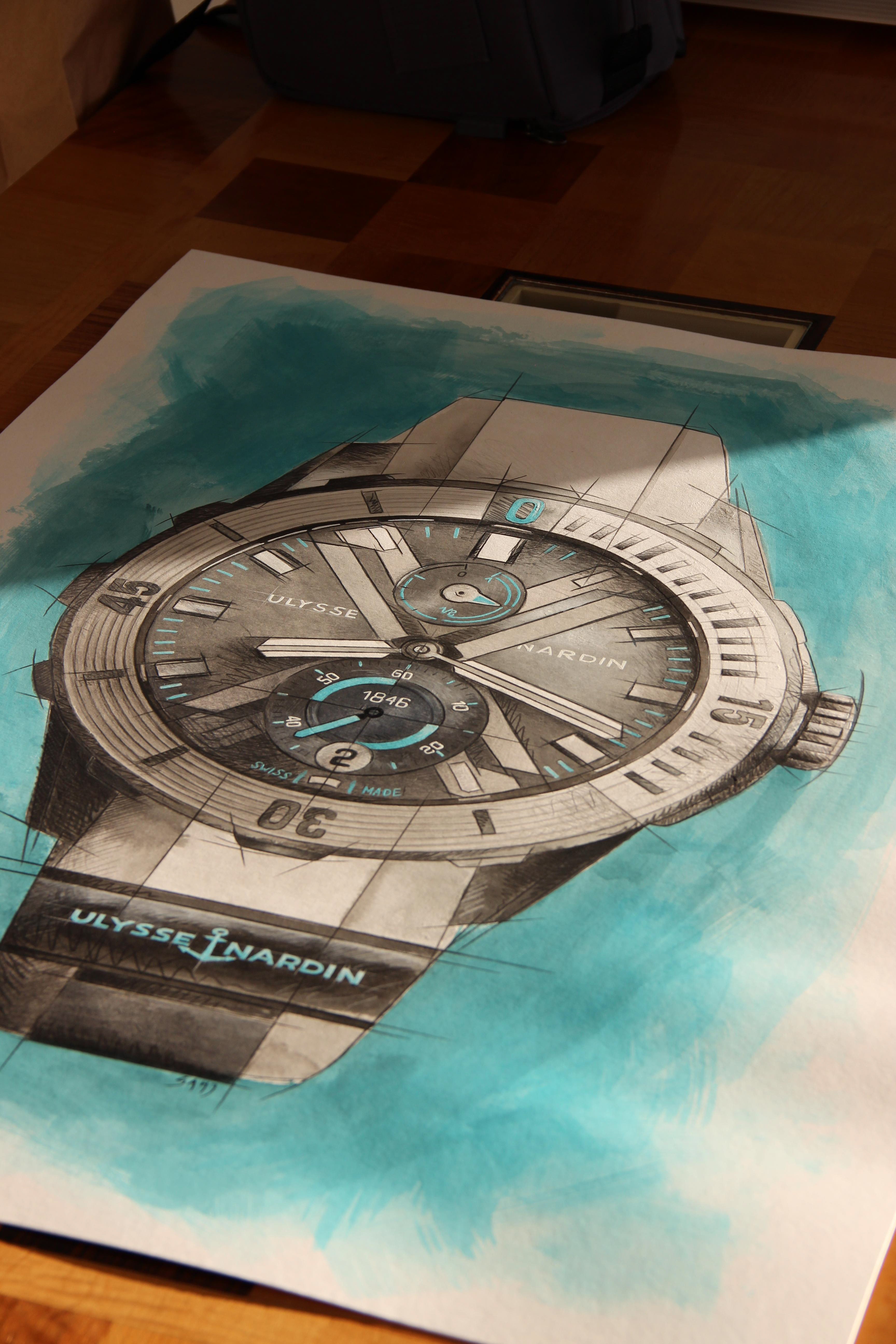 ULysse Nardin gave me the opportunity to draw my own interpretation of three of their iconic watches. These drawings are now framed and hung on the walls of some of their best clients.